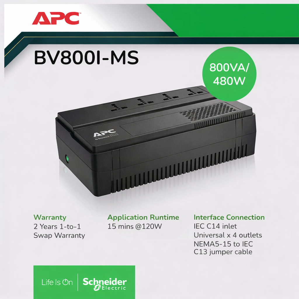 Protect your essential electronics from power outages and surges with the APC Easy UPS BV 800VA.